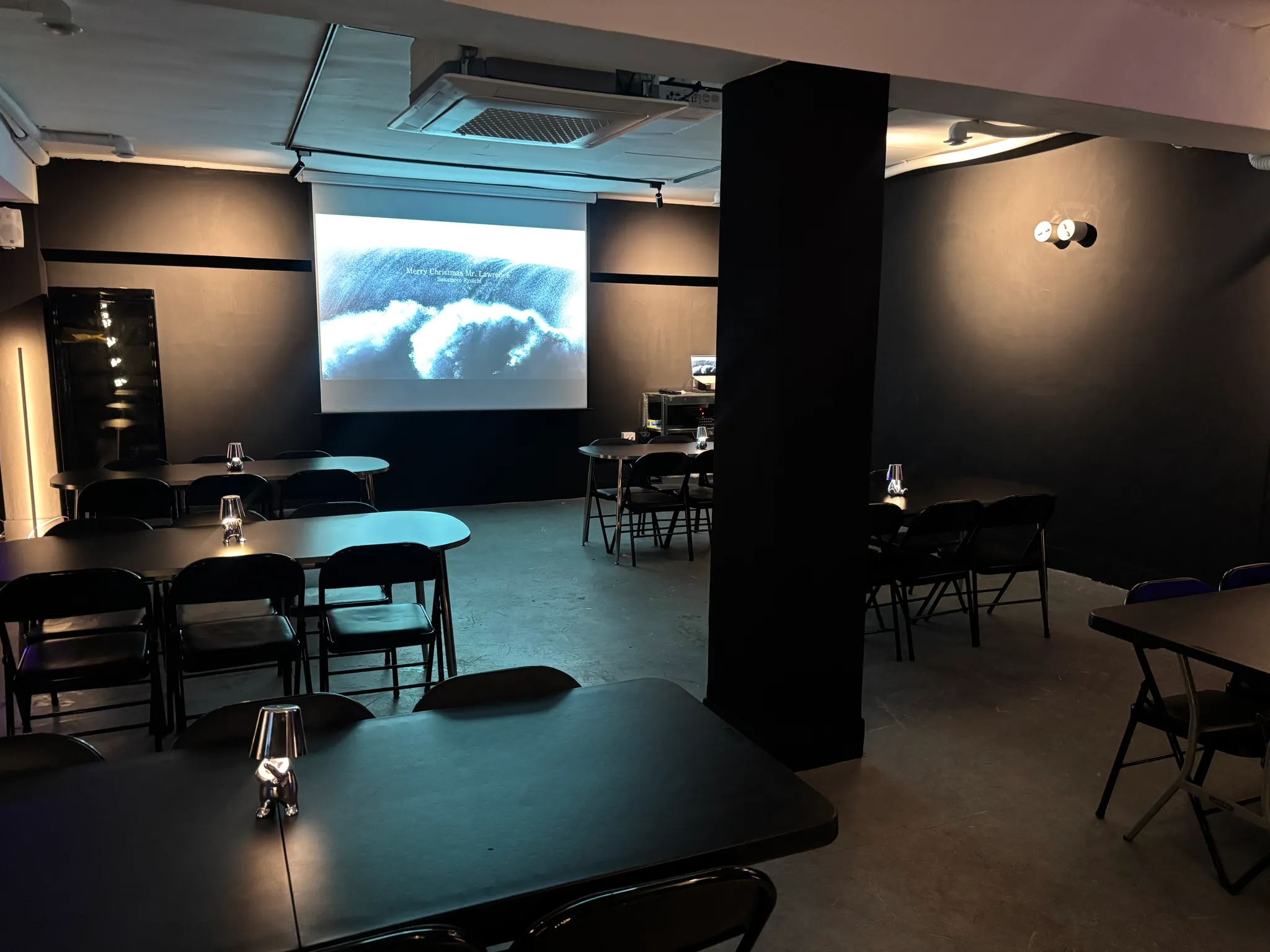 공간 전체가 블랙 + 무드 라이팅으로 꾸며져 있어요