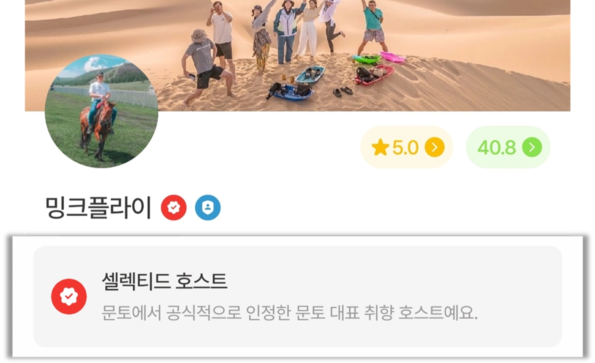 모임 운영이 조금씩 익숙해지고, 나만의 콘텐츠와 운영 방식이 자리 잡기 시작했다면 셀렉티드 호스트를 목표로 삼아볼 수 있어요.