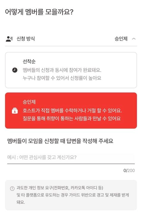 소셜링을 승인제로 운영하면, 이전 회차를 참여하지 않은 멤버의 신청을 선별적으로 제한할 수 있어요.