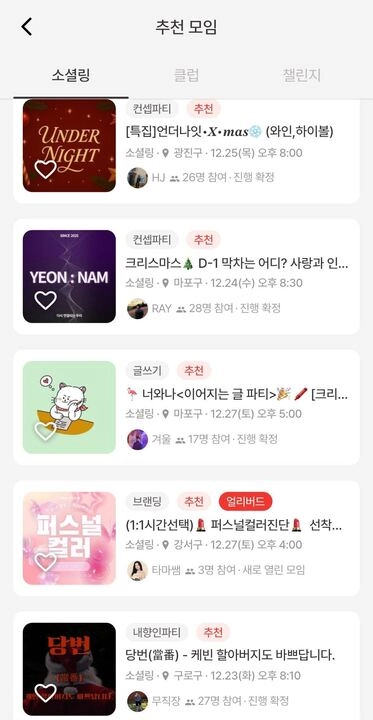 문토를 대표하는 셀렉티드 호스트들의 모임은 [추천 호스트] 섹션에서 확인할 수 있어요