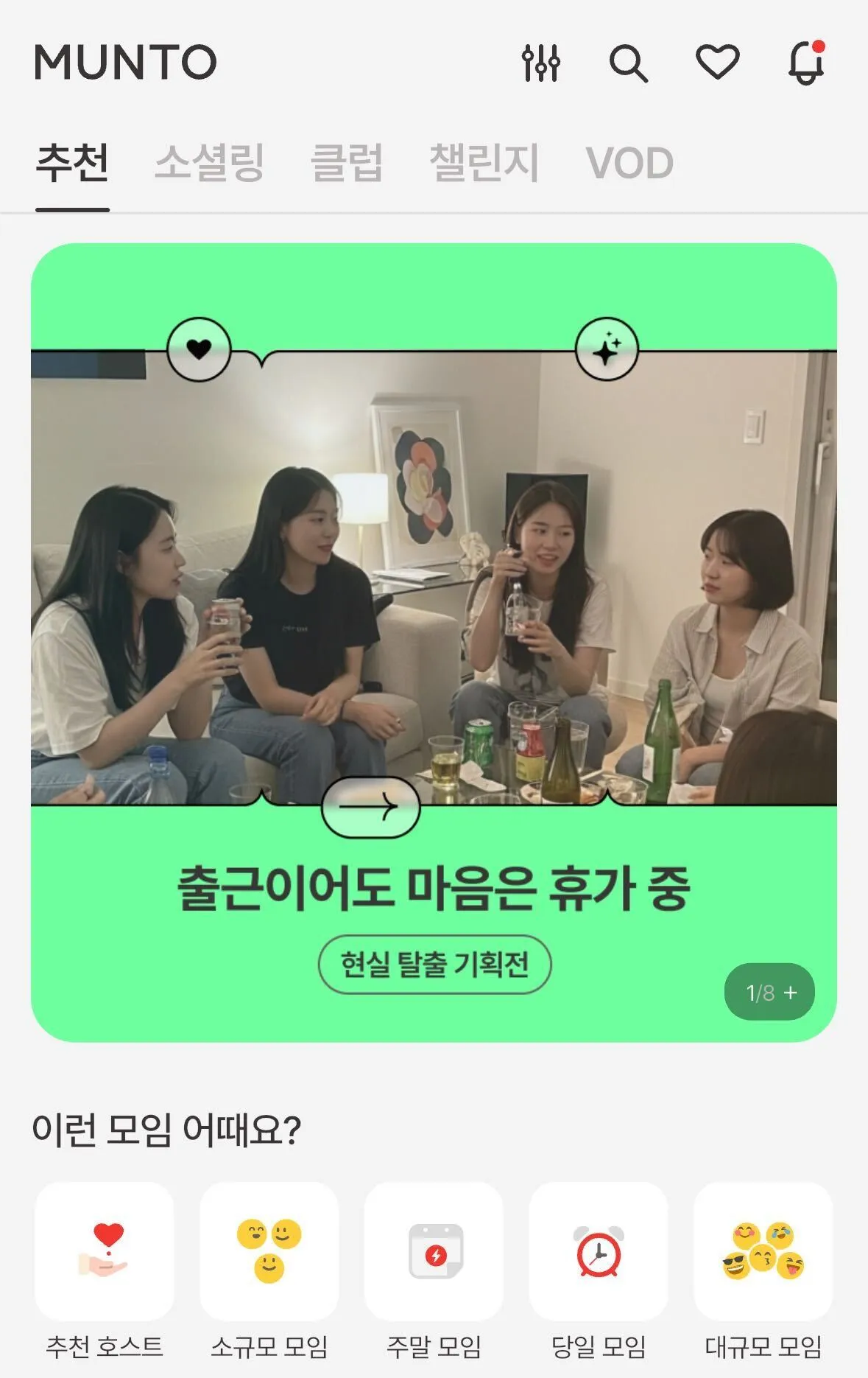 기획전은 앱과 웹 곳곳의 배너에서 확인할 수 있으며, 관련 푸시 메시지도 함께 발송되어 모임 홍보에 효과적이랍니다!