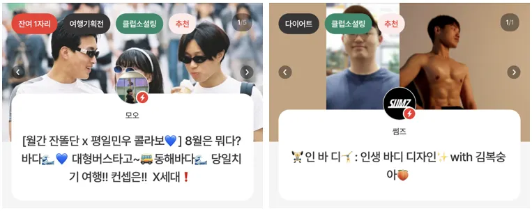 흥미로운 모임을 진행하고 있는 호스트분을 발견했거나 모임을 함께 진행해보고 싶은 멤버가 있다면 망설이지 말고 1:1 채팅으로 콜라보를 제안해 보세요 :)